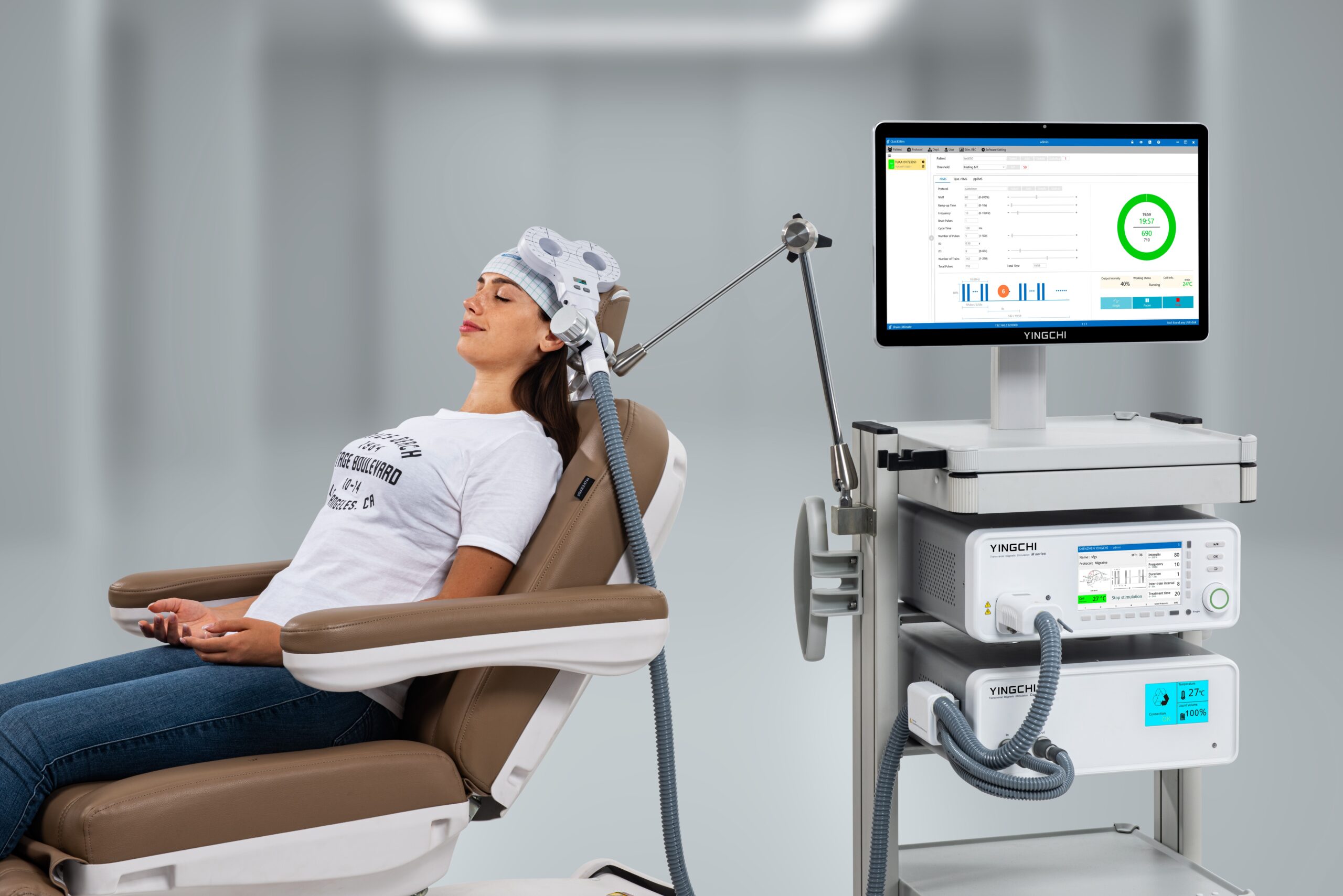 - Apply intensive repetitive TMS protocols without overheating risk
