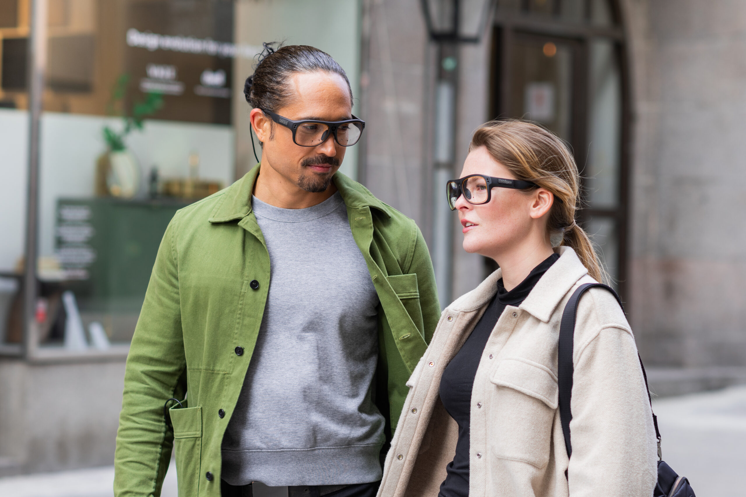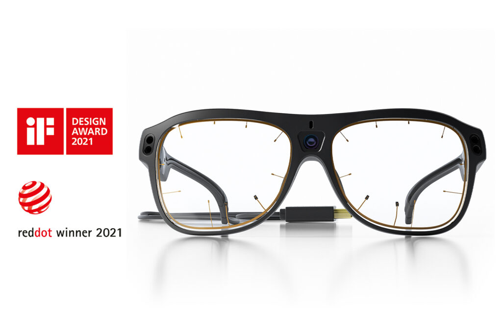 - The glasses weigh only 75 grams and connect to a belt-mounted recording unit (300 grams) where rechargeable batteries help it run up to 105 minutes